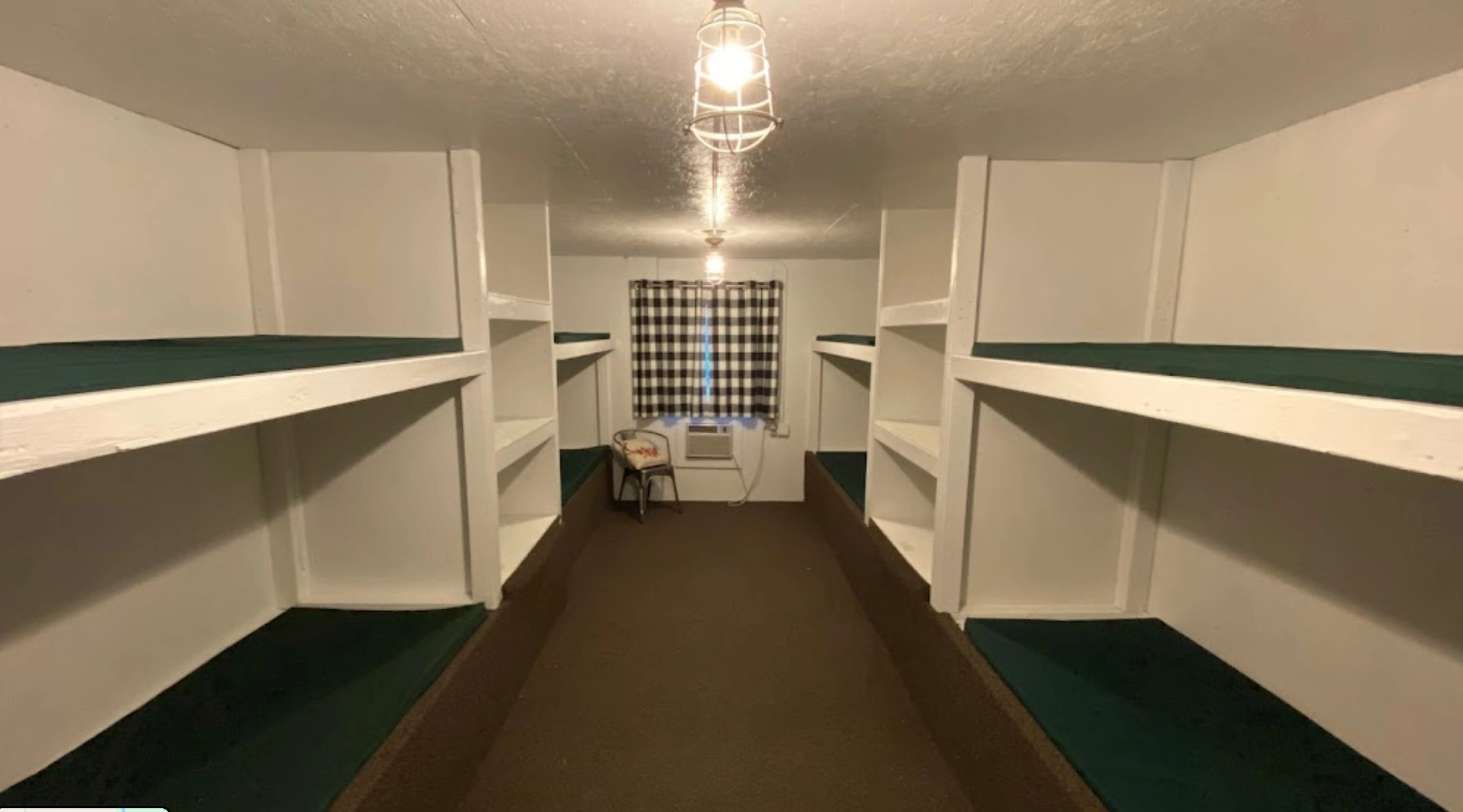 We have enough beds to comfortably sleep 42 guests in our 3 private rooms and 5 cabins/bunkhouses. We also have 8 RV Hook Ups and plenty of space for tents.